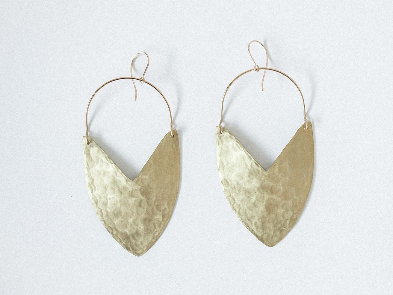 Elegant Brass Tulip Shield (large). These earrings hang quite beautifully. These earrings are hand cut and have a large hammered texture to their finish.