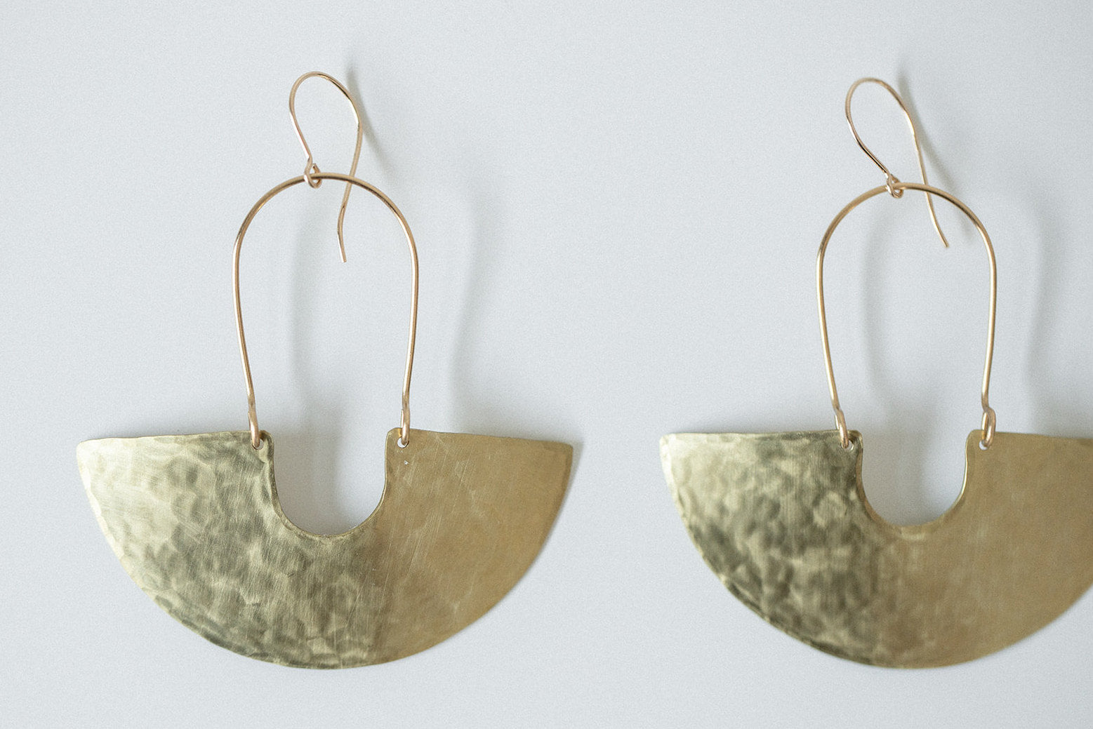 Materials: Brass earring, 14 kt gold filled ear wires.