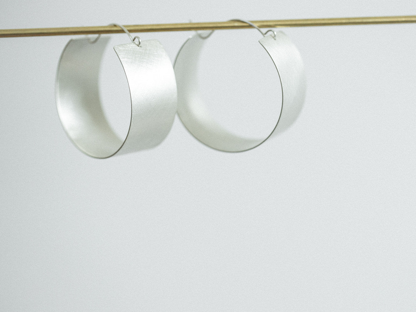 Ebb is part of a small collection of hoop earrings. Inspired by water, movement and the female form, this collection of hoop earrings are the perfect accessory to celebrate your inner goddess. These earrings are hand cut and have a smooth finish. They hang from a simple sterling silver ear wire.