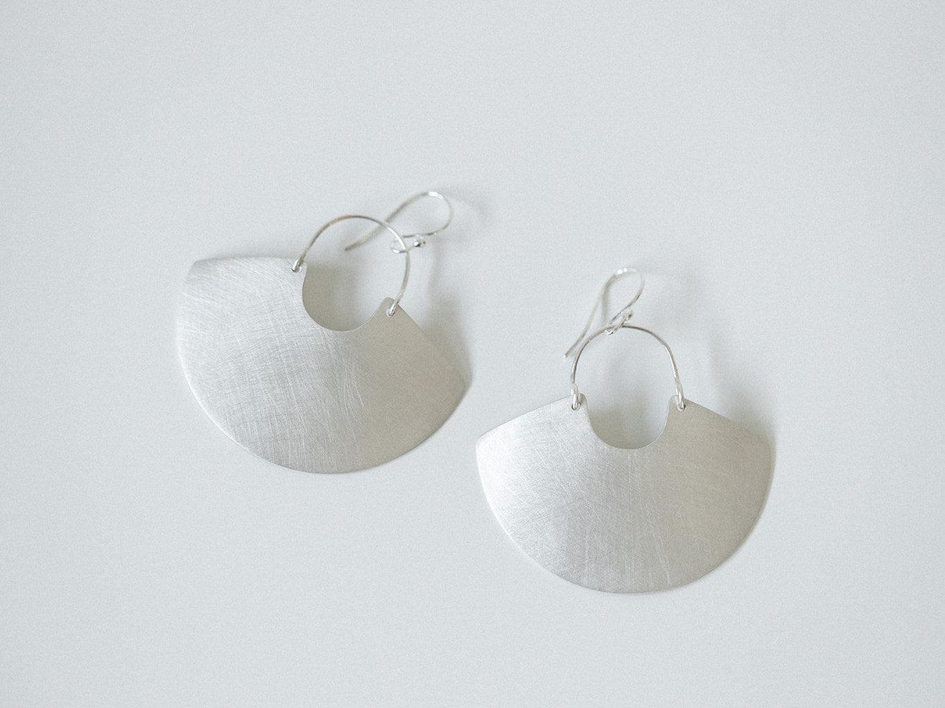 The Goddess Shield Earrings (Mini) are bold yet simplistic in design. They're the perfect pair of earrings for day or night. They are extremely lightweight. These earrings are hand cut and have a matte texture to their finish. They hang from a simple sterling silver ear wire.